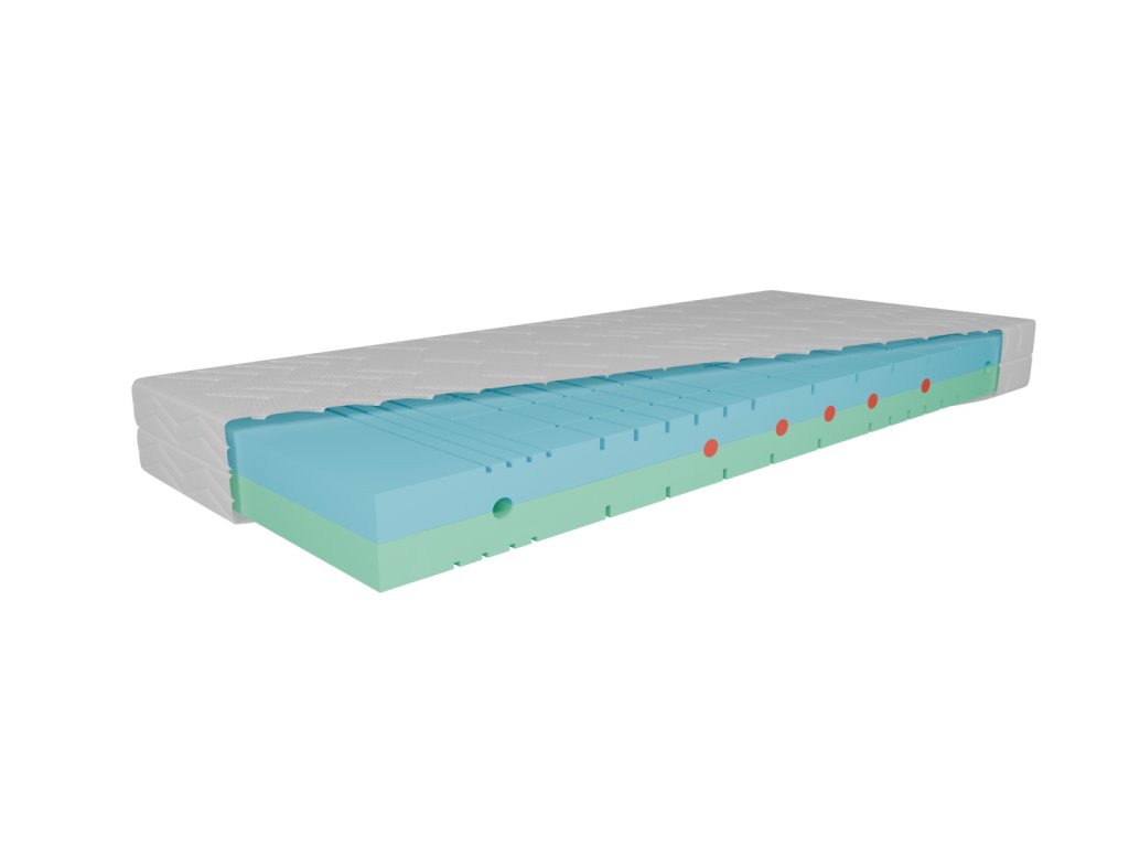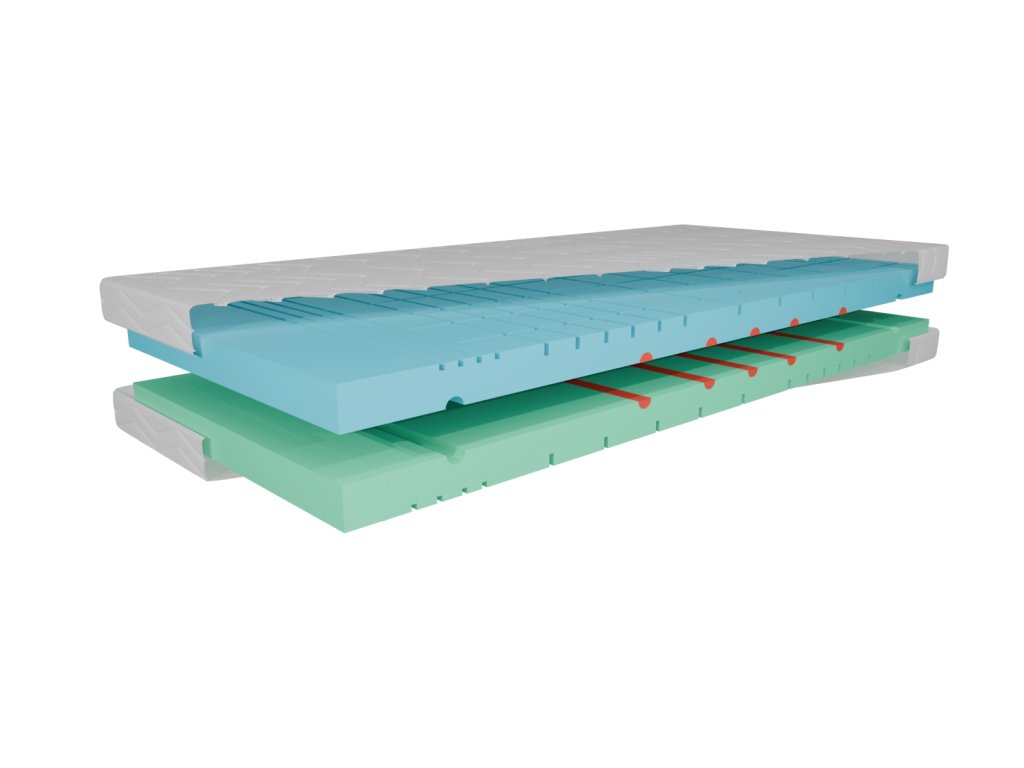 - 9 cm profilovaná HR pena – vysoko elastická pena s výbornou priedušnosťou a dlhodobou tvarovou stálosťou.